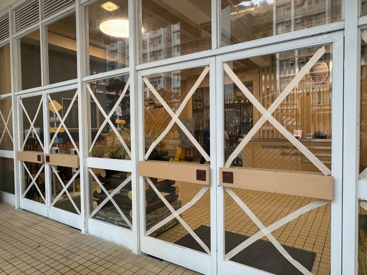超強颱風樺加沙|有中學「超前部署」貼膠紙堆沙包 蔡若蓮到訪學校助防風 (香港經濟日報專訊2025年9月23日)